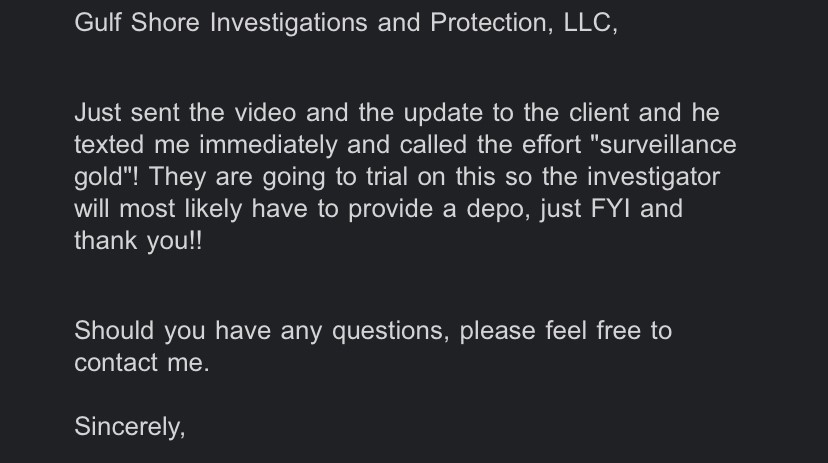 Our investigators hold memberships with both the Florida Association of Licensed Investigators (FALI) and the Texas Association of Licensed Investigators (TALI). These affiliations often involve us in supporting our colleagues with fieldwork across Florida. We approach these assignments with unwavering professionalism, treating our agency partners with the same respect and commitment as we extend to our private clients. Through our Professional Subcontracting and Case Management Division, we ensure close collaboration, maintain transparent communication, and diligently pursue optimal outcomes.